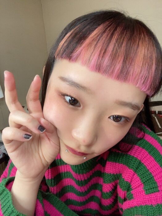 詩羽(うたは)さんといえば、ピンクの髪に刈り上げのストレートロング、口ピアスを付けていたり、メイクやファッションがとてもキュートですね。