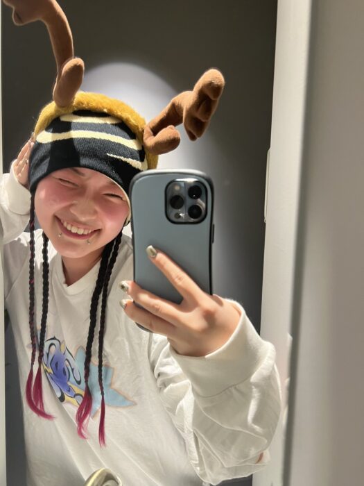 「対人関係でうまくいかなかった時期に、結構急に思い立って刈り上げにしたんです。口のピアスもそうで、見た目を変えるのってやろうと思えば一瞬でできることなので、私にとってはそれがアイデンティティを見つける第一歩でした。」